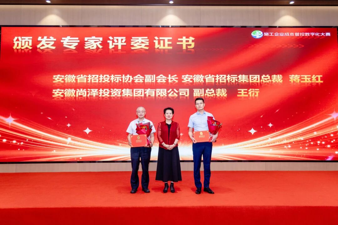 本次大赛采用异地混合评审机制,汇聚全国120余位专家,对1677份参赛案例进行了严格、公正的评判。为感谢他们的卓越贡献,大会首先为专家评委颁布荣誉证书。在热烈的掌声中,安徽省招投标协会副会长、安徽省招标集团总裁蒋玉红,安徽尚泽投资集团有限公司副总裁王衍上台领取殊荣。