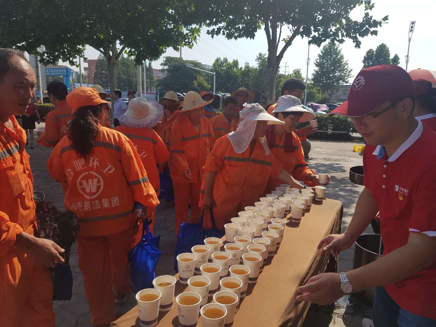 大暑过后高温来袭,尚泽集团党支部、集团向日葵志愿者服务队共同举办了“夏日送清凉、关爱伴我行”慰问环卫工人活动。同时,莲花社区党委副书记刘子飞、丹霞居委会党总支副书记李长青等领导也参加了此次慰问活动,集团党支部书记戴正春带领集团部分党员同志与志愿者队员,来到丹霞环卫站点慰问一线环卫工人,对环卫工人在酷暑中奋战、为清洁城市、改善环境而辛勤地付出致以亲切的慰问,告诫集团党员和志愿者服务队员要关心和尊重环卫工人的劳动成果,共同维护城市的环境卫生。随后,社区领导与大家一起将慰问品亲自送到环卫工人的手上,志愿者们也为环卫工人送上解暑的绿豆汤与矿泉水。