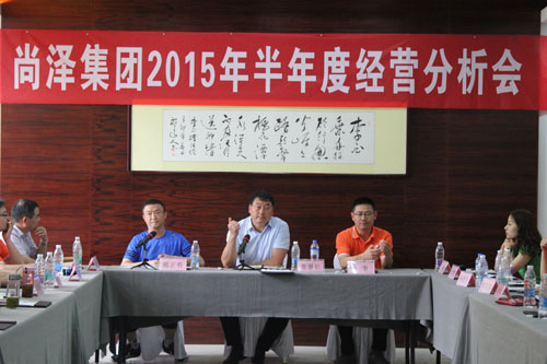 2015年7月18日上午,安徽尚泽投资集团有限公司上半年经营分析会在泾县桃花潭畔度假酒店举行。出席此次会议的有集团公司董事长、经营班全体成员、集团公司部门副职及各分公司副总经理以上人员、部分主管级人员。